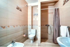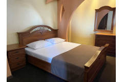 Просторный номер с ванной комнатой. Оборудован: кровать, большой раскладной диван, сплит, ЖК-телевизор, холодильник, стол, стулья, тумбочки. Есть одноразовые душевые принадлежности и тапочки.