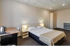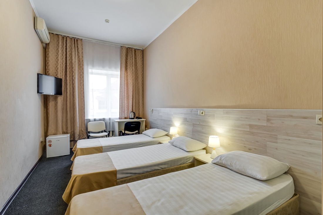Каждый номер оснащен мебелью и техникой. Гости могут пользоваться телевизором, кондиционером, феном. Ванная комната укомплектована гигиеническими средствами. Среди прочих удобств: письменный стол, кровать, шкаф для одежды, посуда. На всей территории работает вай-фай.